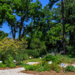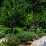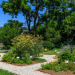 Appropriate to the house built from 1799-1803, plants include chives, chamomile, catmint, bergamot, aster, candytuft, lamb’s ear, baptisia, oregano, parsley, and artemisia just to name a few.
