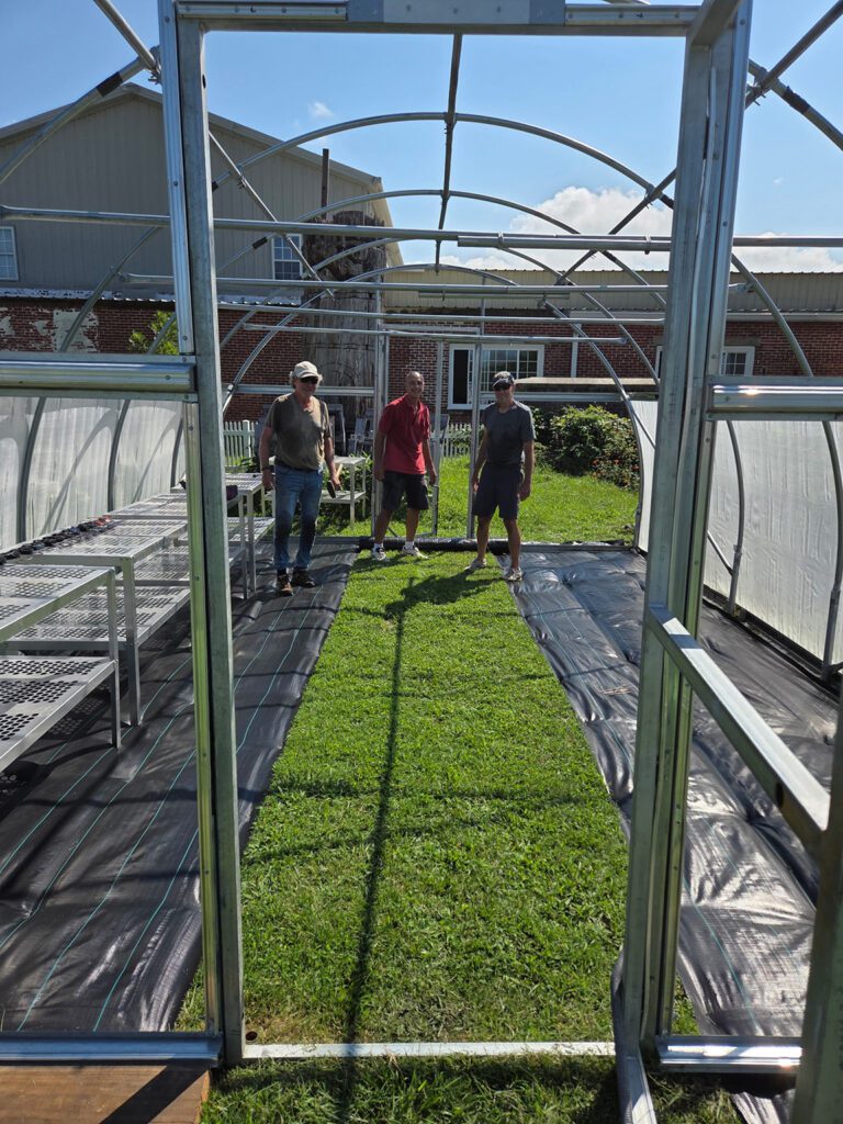 New greenhouse construction at NRYG. Pictured are Ken Sipe, Phil Goetkin and Eric Feuillatte